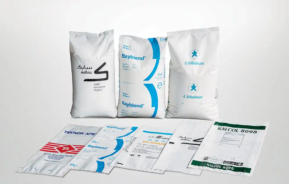 Printing and color control. Industrial PE sacks are frequently specified with flexographic printing limits and with pigmented films for brand identification. One supplier specifies up to 10-color printing capability for industrial plastic packaging products, while another lists up to 8-color flexographic printing and notes the use of pigmentation and even PCR (recycled polyethylene) options.