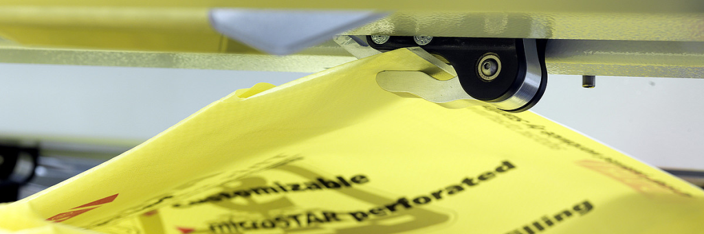 Exterior printing — W&H. When branding is required, flexographic stations hold registration and ΔE; OPV zones protect rub areas while leaving grip where pallets need friction.