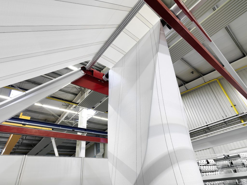 - Extrusion coating/lamination — A co‑extruded polyolefin tie joins film and fabric at a heated nip; coat‑weight control within ±1–2 g/m² stabilizes peel strength and foldability.